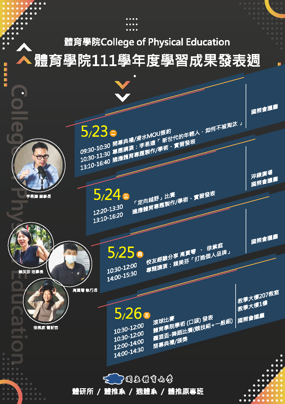 ※體育學院「111學年度學習成果發表週」112年5月23日至5月26日※系列活動 (精彩內容請看裡面)